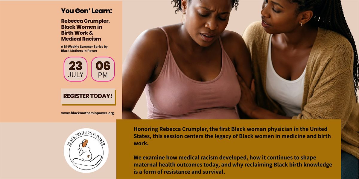 Join us in person for an eye-opening event diving into the incredible legacy of Rebecca Crumpler, the first Black woman doctor in America. We'll explore the powerful role of Black women in birth work and unpack the harsh realities of medical racism. It's a space to learn, reflect, and connect. Don’t miss out on this important conversation!