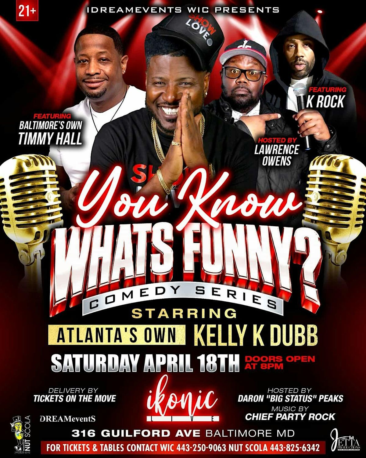 Info: After the Pre Show, our comedians will hit the stage to laugh you right out of your seats. Starring from Atlanta Kelky K Dubb. Featuring Baltimore's Own Timmy Hall and K Rock all hosted by Lawrence Owens. If Its your birthday, you're in for a real treat with our special birthday segment of the show.
