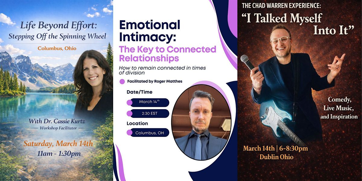 (6-8:30pm) The Chad Warren Experience: "I Talked Myself Into It" (Facilitator Chad Warren) - Part comedy, live music, and inspiration, Chad uses humor, stories, and original songs to explore the most important relationship you'll ever have-the one with yourself. Turns out, you've been bringing you into every relationship this whole time.