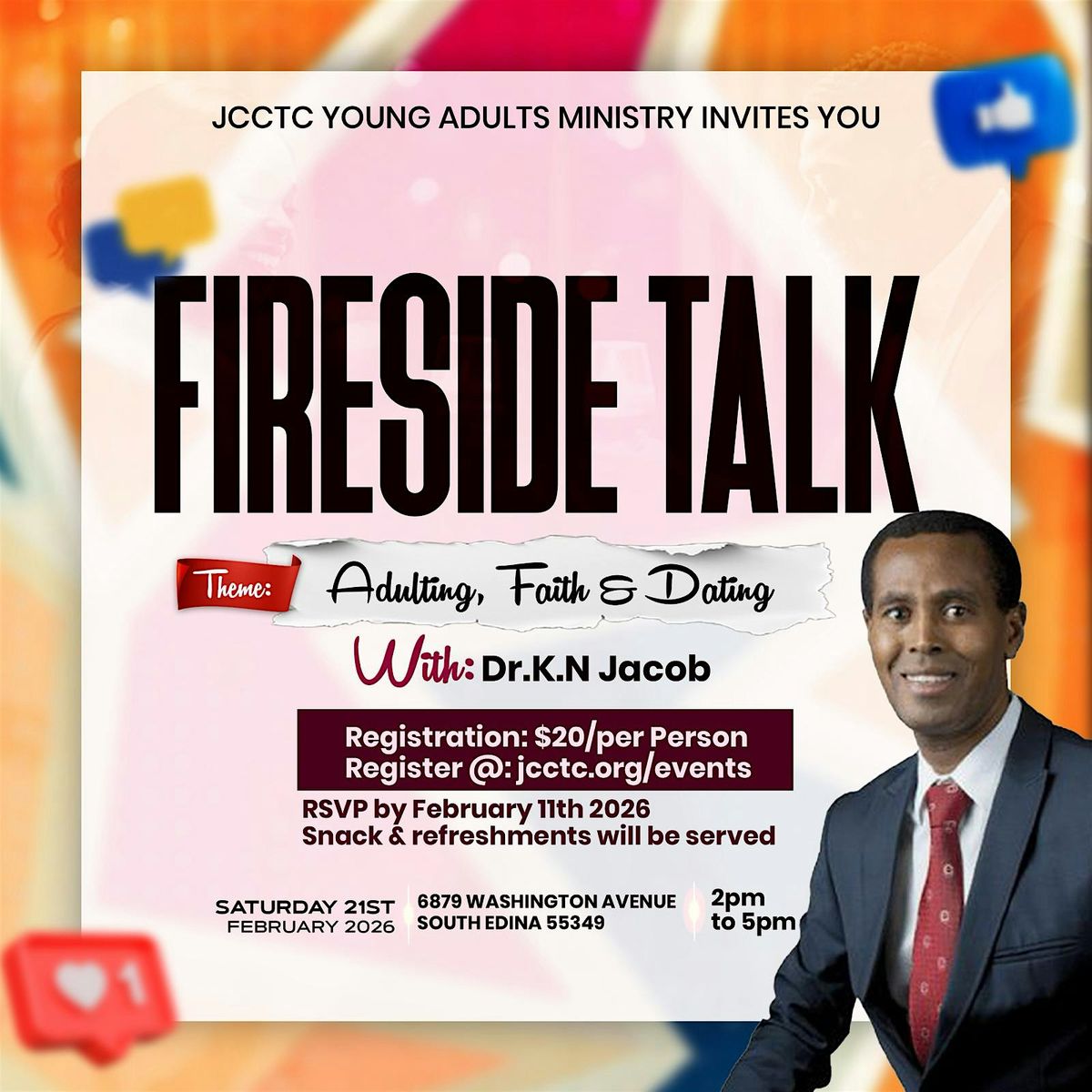 Join us for an impactful Young Adult Talk hosted by Dr. K.N. Jacob from 2–5 PM, designed to equip and encourage young believers in this pivotal season of life. This focused afternoon session will explore faith, purpose, decision-making, and spiritual growth through practical, biblically grounded insight. In a world full of pressure and uncertainty, this talk offers clarity, wisdom, and encouragement to help you confidently walk in your calling and deepen your relationship with Christ. Come ready to listen, reflect, and be strengthened in your faith journey.