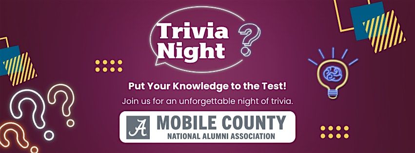 Join the Mobile County chapter of the UA-NAA for a Young Alumni trivia night! Form a team with fellow Bama alumni and friends to test your knowledge and show everyone Where Legends are Made.