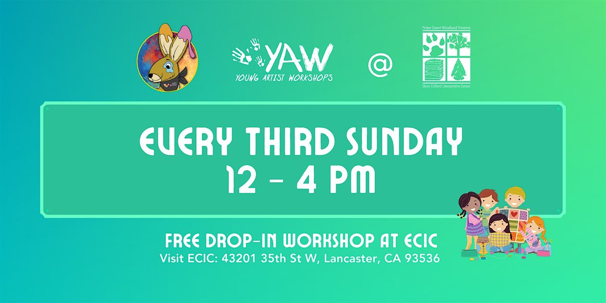 Young Artist Workshops are free art activities for children ages 3+ (must be accompanied by an adult). Participants can come to a YAW anytime between 3 and 7 pm. Workshops at Elyze Clifford Interpretive Center (located within Prime Desert Woodland Preserve) are every third Sunday of the month.