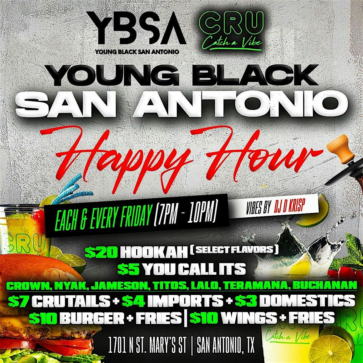 Join Young Black San Antonio and Cru Lounge for Happy Hour every Friday from 7-10pm.About this Event