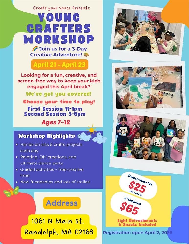 Join us for our Young Crafters Workshop, a 3-day creative experience designed for kids ages 7–12!