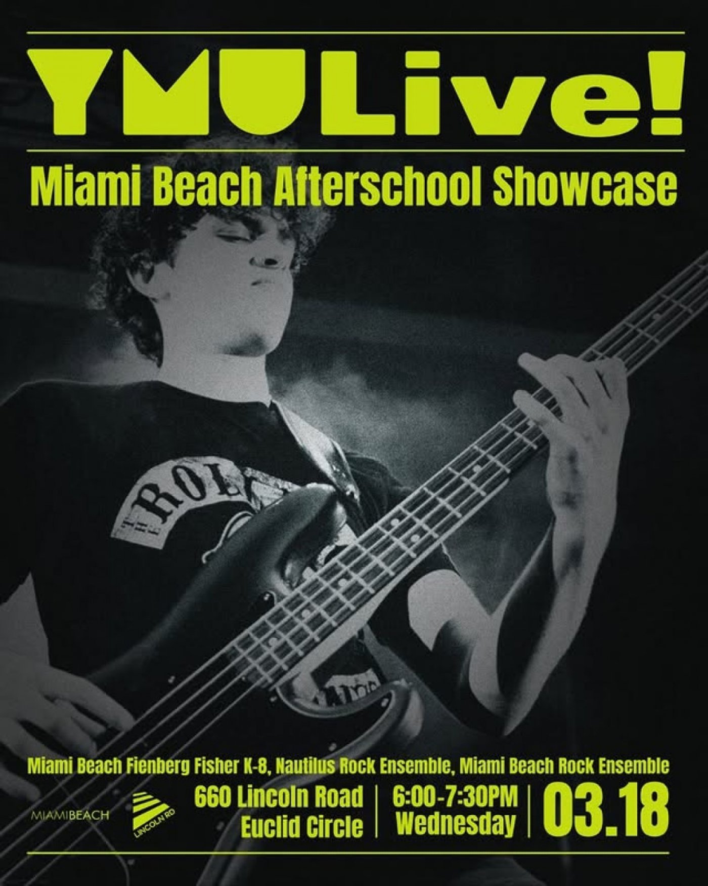 Join us at YMU Live! Miami Beach Afterschool Showcase for an evening of performances by our talented afterschool rock ensembles as they take the stage.