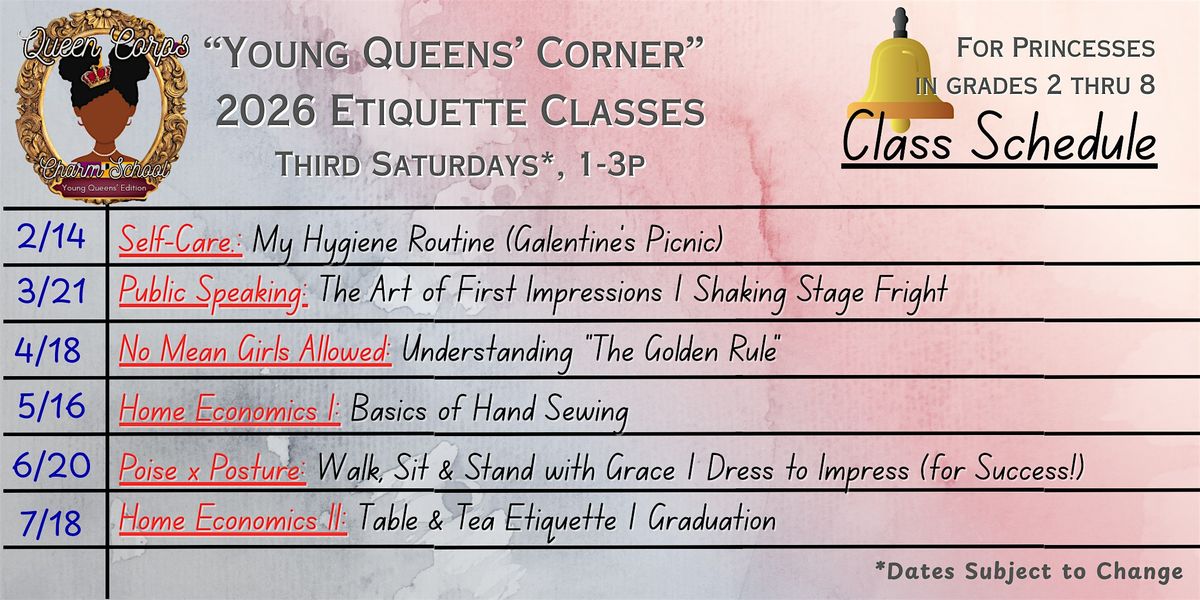 Young Queens' Corner 2026: Etiquette & Life Skills Series for Princesses
