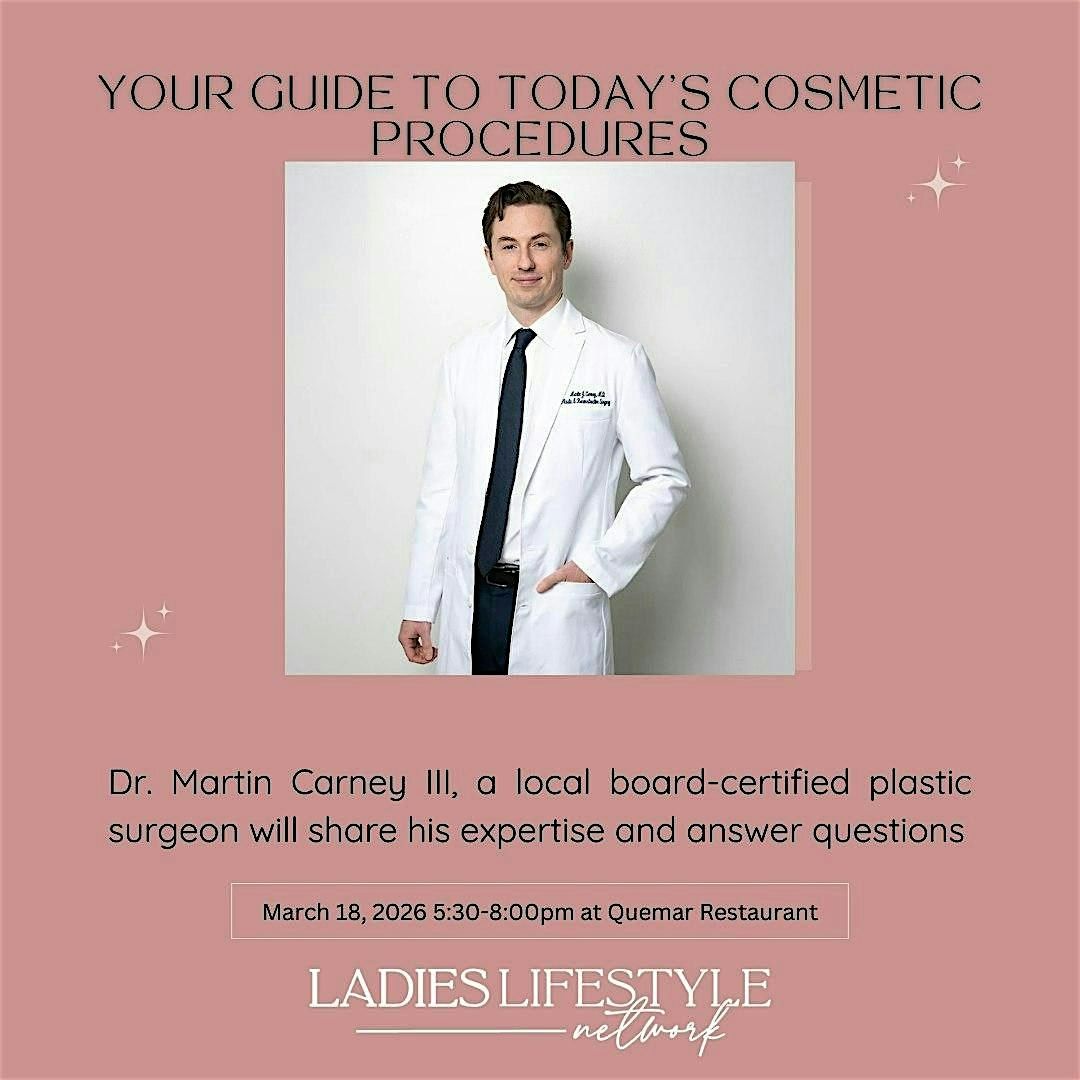 Join Ladies Lifestyle Network Virginia Beach for an informative and engaging evening focused on confidence, wellness, and understanding today’s aesthetic options. This special presentation will feature local plastic surgeon Dr. Martin Carney III, who will share expert insights into modern cosmetic procedures, treatment considerations, and how to make thoughtful, informed decisions about aesthetic care. Attendees will gain a better understanding of available options, realistic expectations, and the role of individualized treatment in achieving natural, beautiful results.