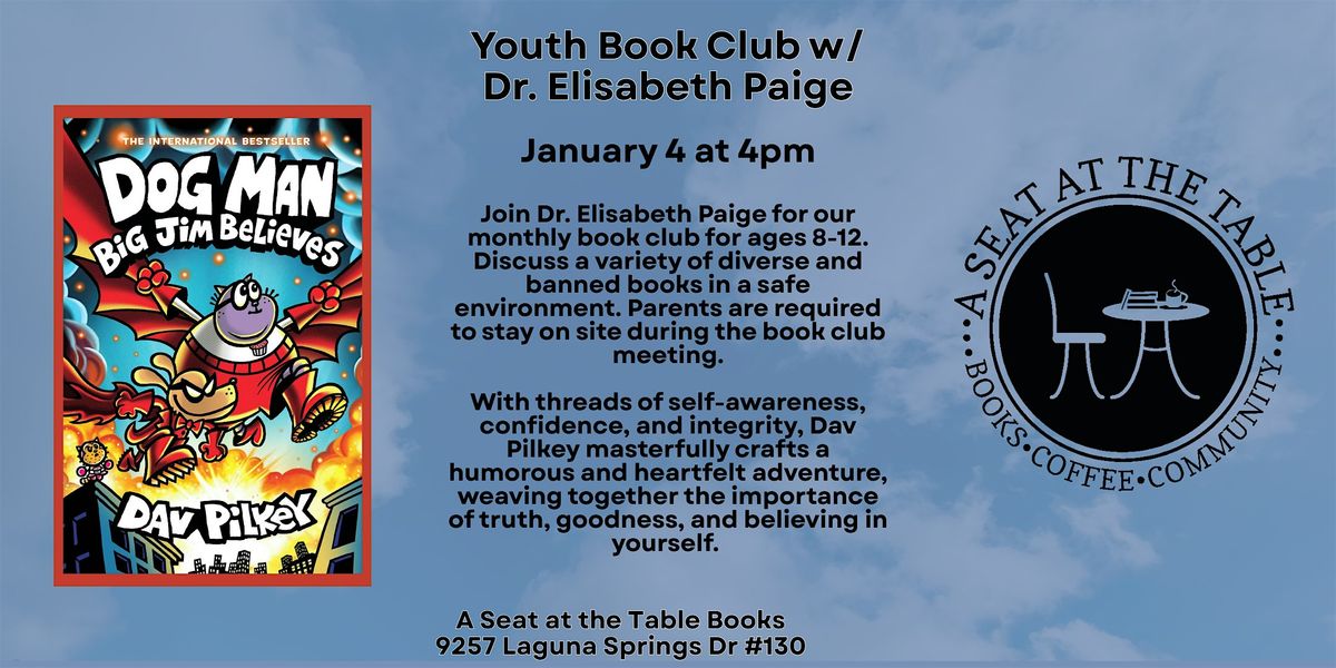 Join Dr. Elisabeth Paige for our Youth Book Club, reading the latest installment of the Dog Man series!