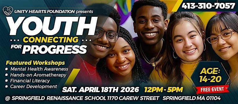 Youth Connecting for Progress is a free event designed to uplift and empower youth ages 14–20. The event brings young people together for engaging workshops, networking, and peer connection. Attendees will gain valuable skills in mental health awareness, hands-on aromatherapy, financial literacy, and career development, while meeting fellow youth in a supportive and inspiring environment.