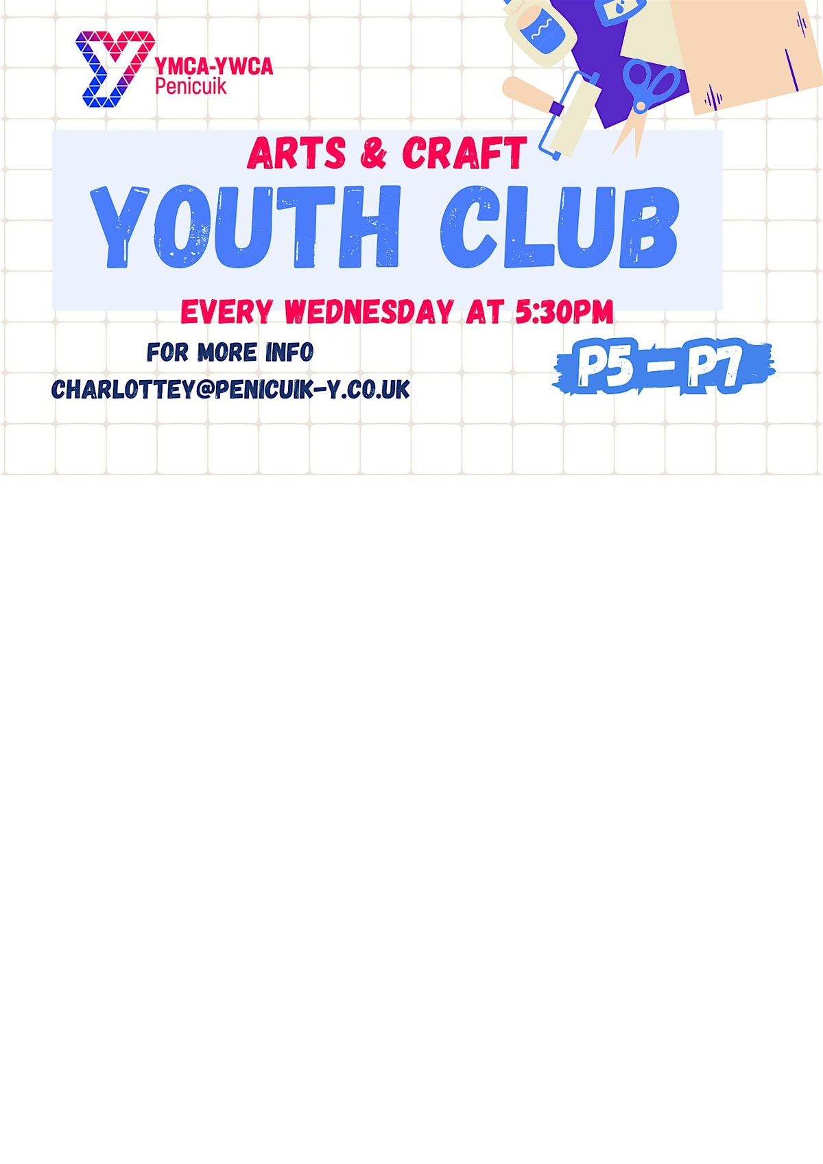Come join us at Penicuik Y's Youth Hub for a hands-on experience filled with colours, textures and fun! Bring your creativity and let's enjoy crafting together! Club is designed for young people in P5 to P7.