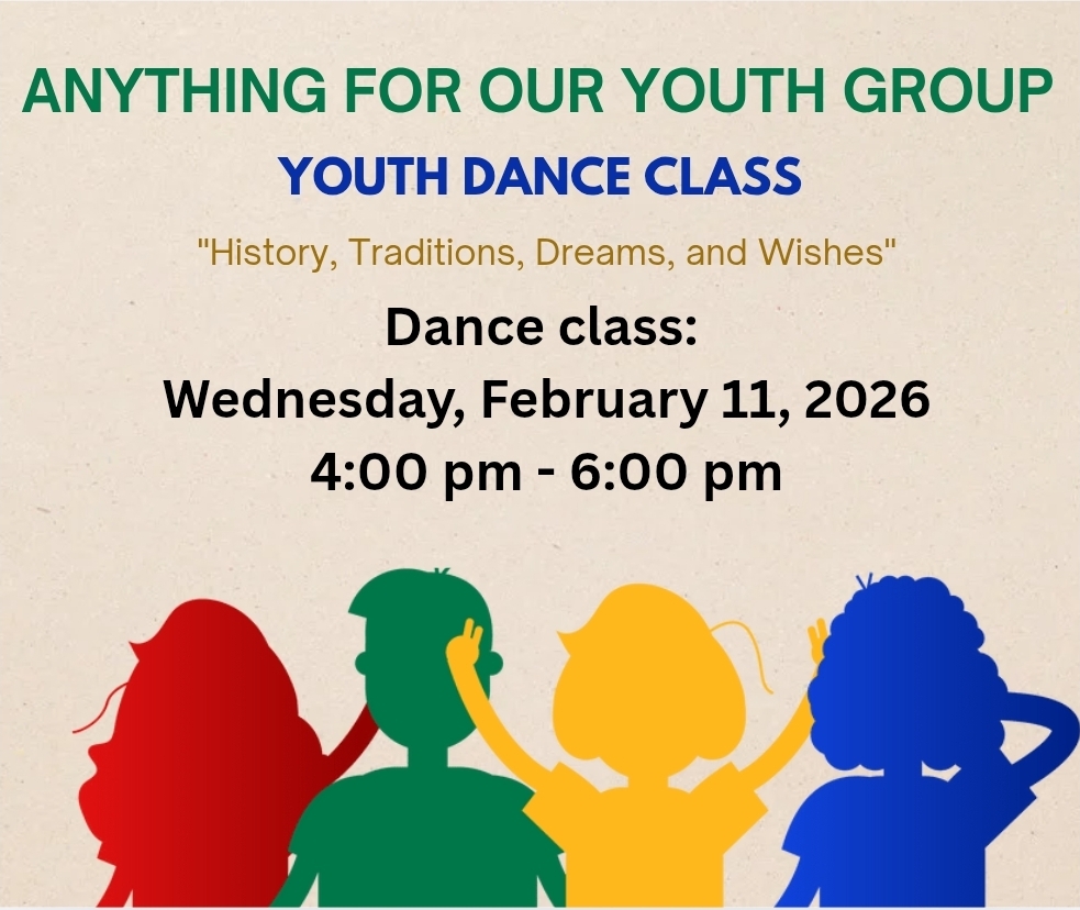 Don't miss out on this exciting opportunity to learn, grow, and dance your heart out. The classes are "Free" and open to youth school age 5 years old and up. Sign up and join us every Wednesday. Secure your spot now and get ready to tap into your full potential on the dance floor at "Youth Dance Class" by Anything For Our Youth.