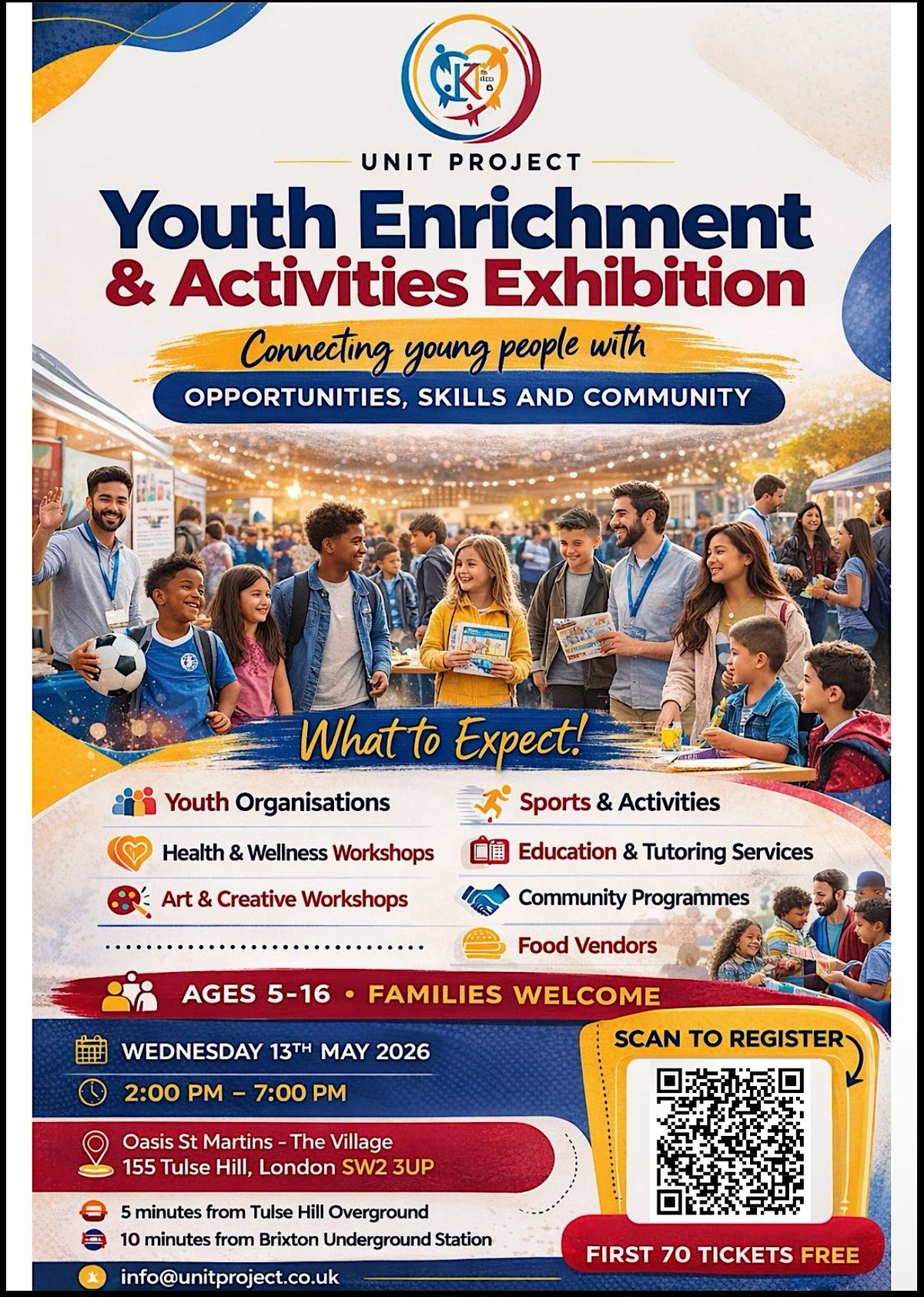 Get ready to dive into a world of fun and growth at the Youth Enrichment & Activities Exhibition! This in-person event is perfect for exploring awesome programs and activities designed just for youth. Whether you're into sports, arts, or learning new skills, there's something cool waiting for you. Come hang out, discover exciting opportunities, and make new friends in a lively and friendly atmosphere. Don’t miss out on this chance to enrich your youth experience!