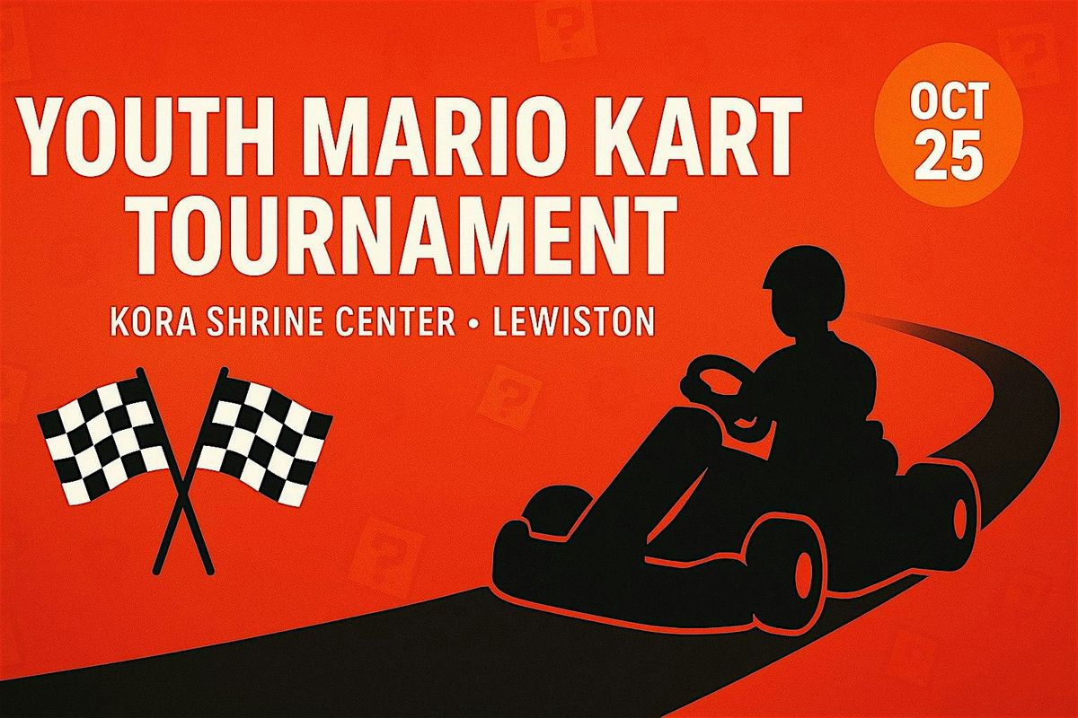 Youth Mario Kart Tournament on Nintendo Switch. Double elimination. Time trials and a costume contest with prizes.