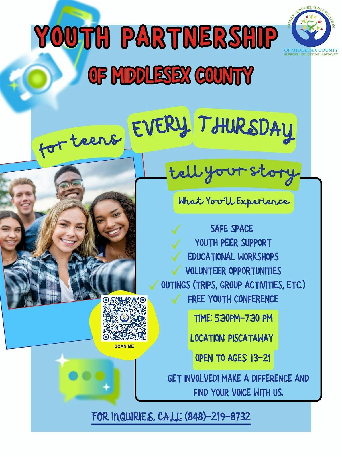 Our Mission is to educate the public, youth, families and organizations that we the Youth Partnership of Middlesex County are no different than Other people. We want to become a youth-oriented voice in this state helping to reduce the stigma of mental health challenges while helping others in the community.