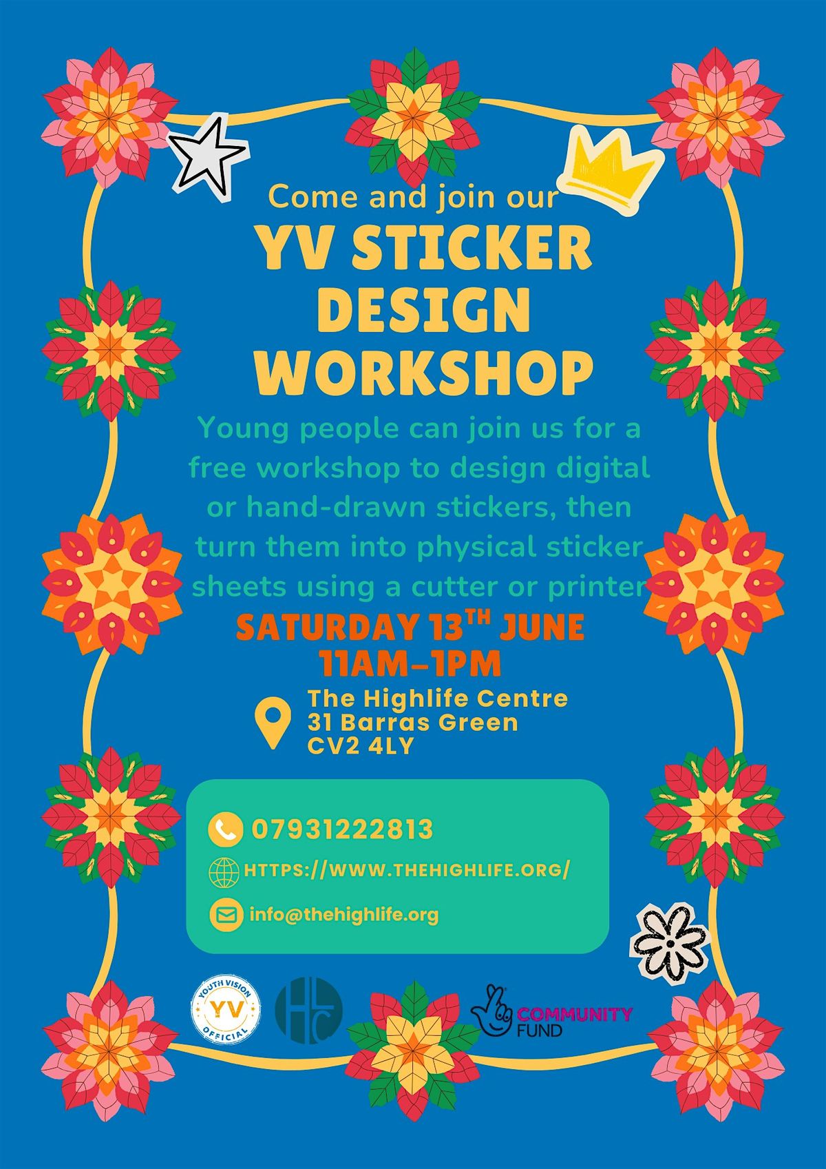 Hey creative minds! Join us in person for the Youth Vision Sticker Design Workshop. This is your chance to bring your ideas to life and design cool stickers that show off your unique vision. Whether you’re a doodle pro or just love to play with colors, come hang out, share your creativity, and make some awesome art with friends. Don’t miss out on this fun, hands-on experience — we can’t wait to see what you create!