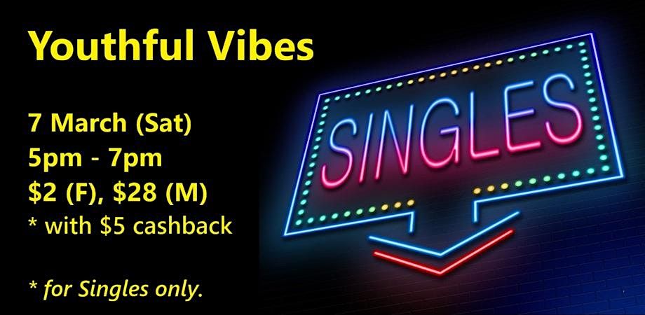 Youthful Vibes (Sat, 7 Mar). singles social event. With $5 cashback.
