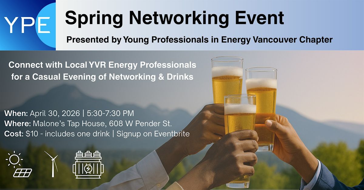 An opportunity to connect with local energy professionals for a casual evening of networking and drinks in downtown Vancouver near Waterfront Station.