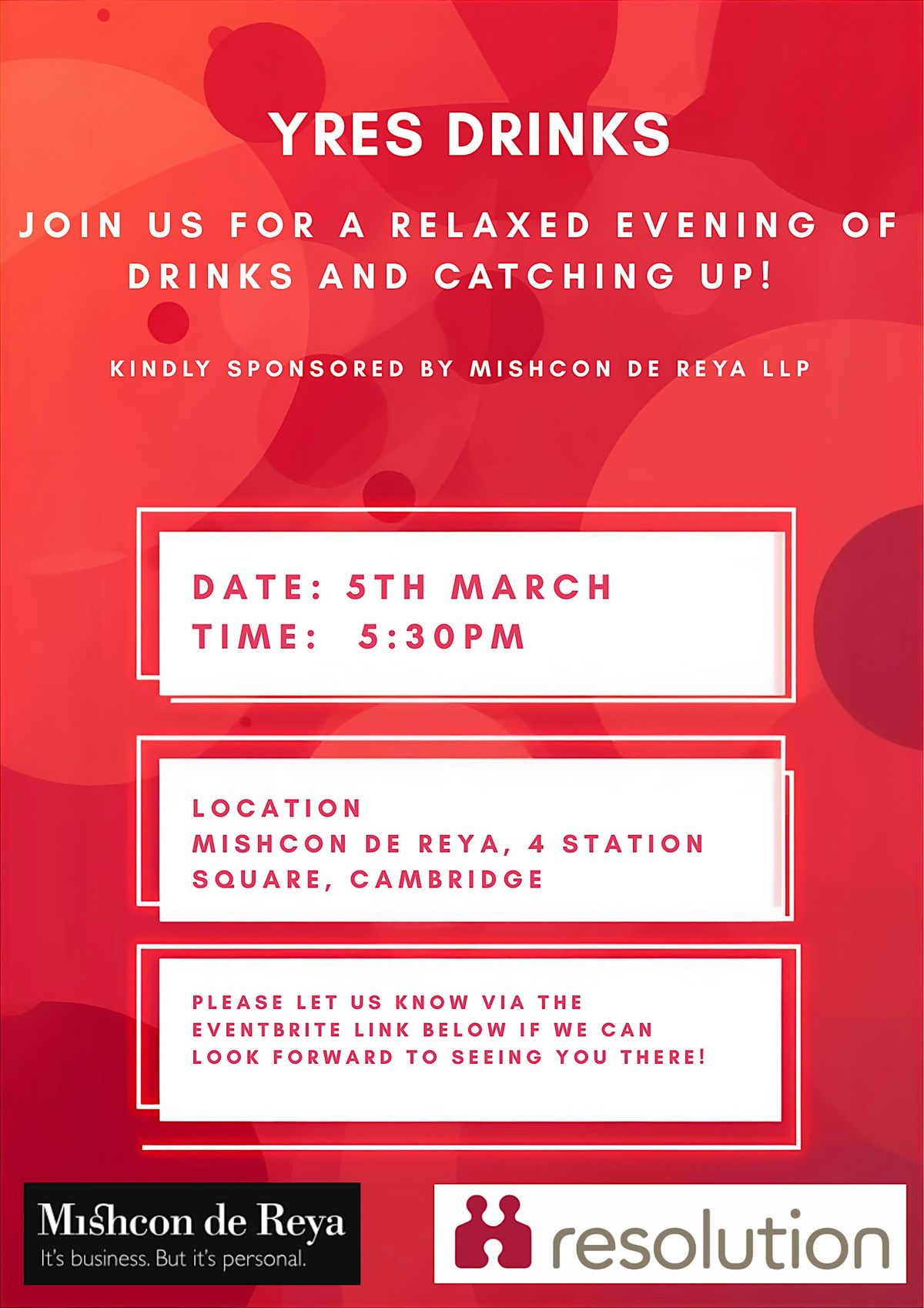 Join us for a fun and relaxed night at the YRes Drinks Evening! It’s the perfect chance to meet new people (or catch up with familiar faces), chat over some great drinks, and unwind after a busy day. Hope to see you there!