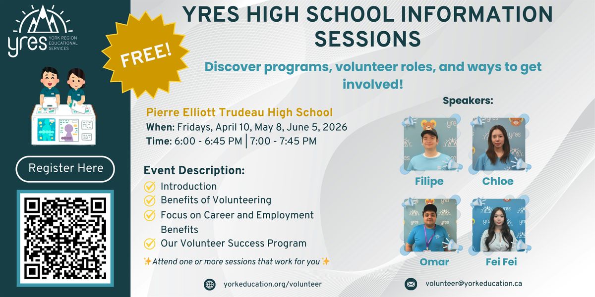 Join York Region Educational Services at Pierre Elliott Trudeau High School to learn more about available Volunteer Opportunities open to you through YRES!