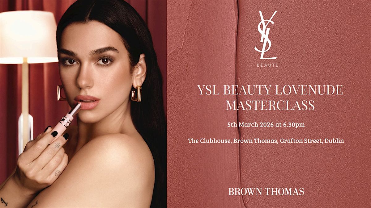 Terms and conditions: €20 tickets are fully redeemable against the purchase of YSL Beauty products only on the day of event.By purchasing ticket(s) for this event you agree (on your own behalf and on behalf of any guests attending with you) to be bound by Brown Thomas Arnotts Terms & Conditions which can be found at