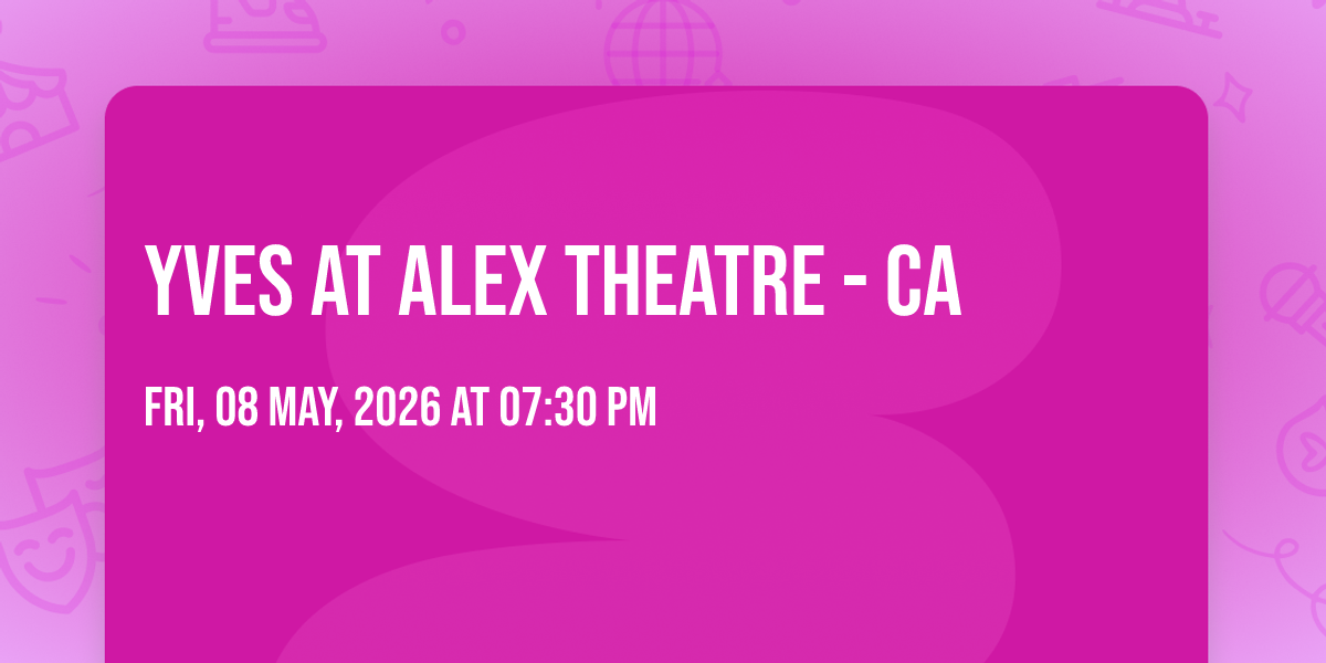 🌟 Be part of history at Yves at Alex Theatre - CA, an extraordinary gathering that will captivate your imagination! 🏛️ The prestigious Alex Theatre - CA in Glendale, CA sets the stage for an unforgettable experience on May 8th, 2026 at 07:30 PM. ✨ They are bringing together the finest elements of entertainment and innovation to create moments that will take your breath away. From the moment you arrive, you'll be immersed in an atmosphere of wonder and excitement. 🎯 This carefully planned event ensures every guest experiences something truly special. 🎊 Early booking is recommended for this must-attend event of the season!