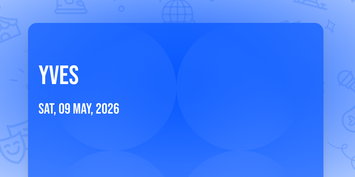 📍 Location: 34.1489, -118.254🎉 Welcome to Yves, where dreams come alive and possibilities are endless! 🏛️ Join us at Alex Theatre in the heart of Glendale, CA for an event that defies expectations. 📅 On May 9th, 2026 at 02:30 AM, be part of something truly extraordinary as we bring together innovation, entertainment, and pure magic. ✨ Every aspect has been carefully designed to ensure an unforgettable experience for all our guests. Whether you're seeking adventure, inspiration, or simply a break from the ordinary, this event promises to deliver beyond your wildest dreams. 🎊 Prepare for a journey into the extraordinary!