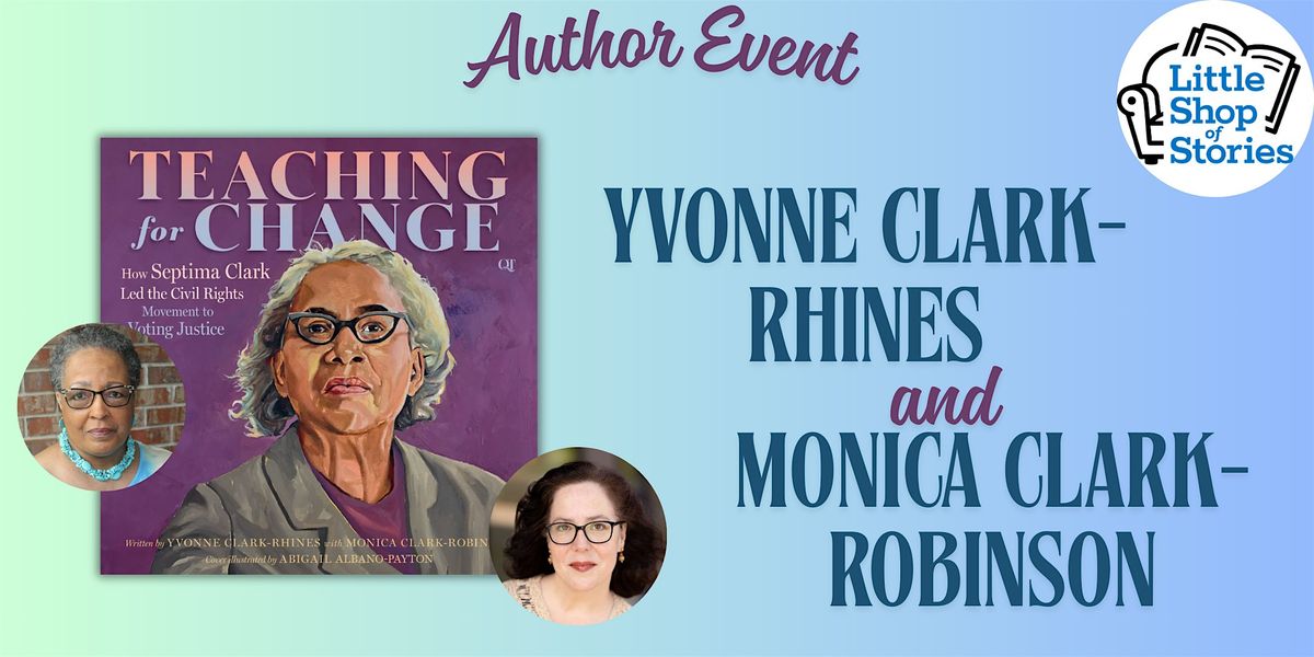 Little Shop of Stories is so incredibly excited and honored to welcome Yvonne Clark-Rhines and Monica Clark-Robinson to Decatur to read and discuss their book, Teaching for Change: How Septima Clark Led the Civil Rights Movement to Voting Justice! Be sure to save your spot for what is sure to be a very special storytime and author talk! Read below for more details:
