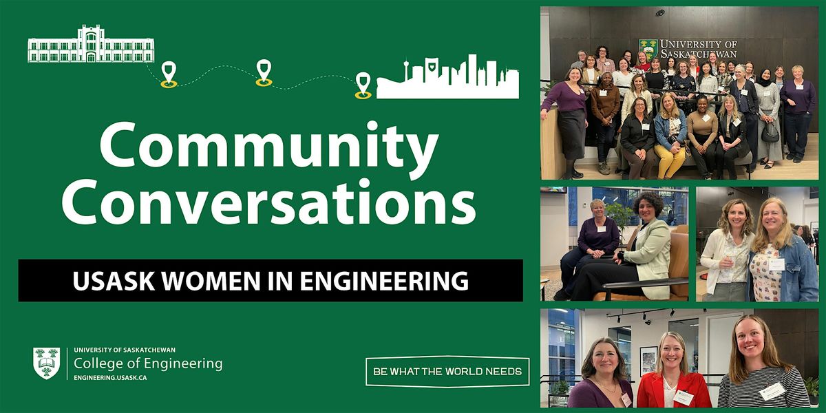 Join us for the next event in the USask Women in Engineering: Community Conversation Series, an opportunity for Calgary and area alumnae from accross generations to come together, share experiences and strengthen the USask Engineering community.
