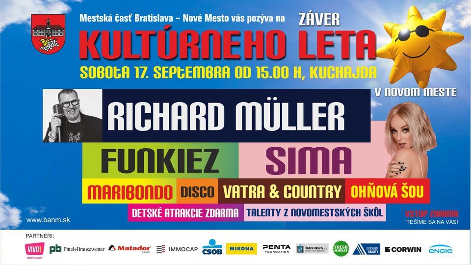 ? Richard Müller, ? Sima, ? Funkiez! Pozývame vás na veľkolepé ukončenie Kultúrneho leta 2022 v Novom Meste! ?? Tešíme sa na vás v sobotu 17. septembra na Kuchajde