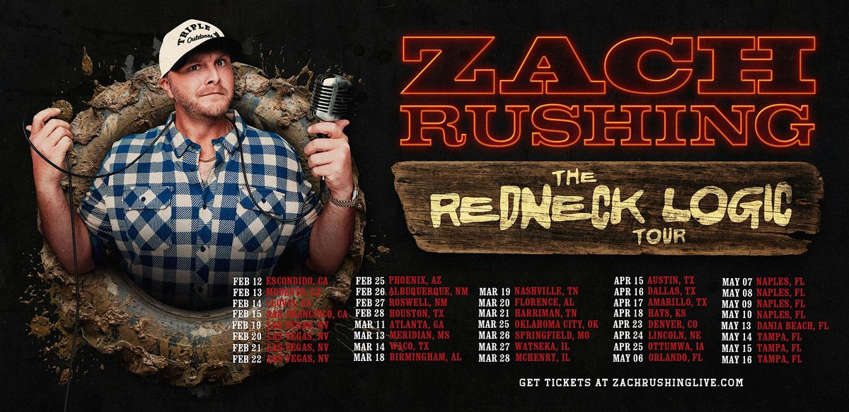 Zach Rushing is just a simple Mississippi boy with a loud mouth and a big heart. He was raised believing in hard work, good friends, and telling it like it is, and he never really grew out of that. Most people know him from his comedy, where he has built a career on being unapologetically himself. Whether on stage for the "Redneck Logic" Tour, raising hell on social media, or telling stories that hit a little too close to home, he tries to keep it real and keep people laughing. More than just a comic, Zach is the owner and CEO of Triple B Outdoors, where he gets to share his love for hunting, fishing, and the outdoors with folks who live for the same things. At the end of the day, his honest takes on pop culture, desire to entertain people, and genuine love for the simple things in life make him an inspiring character in a world filled with so much fraud and deception.
