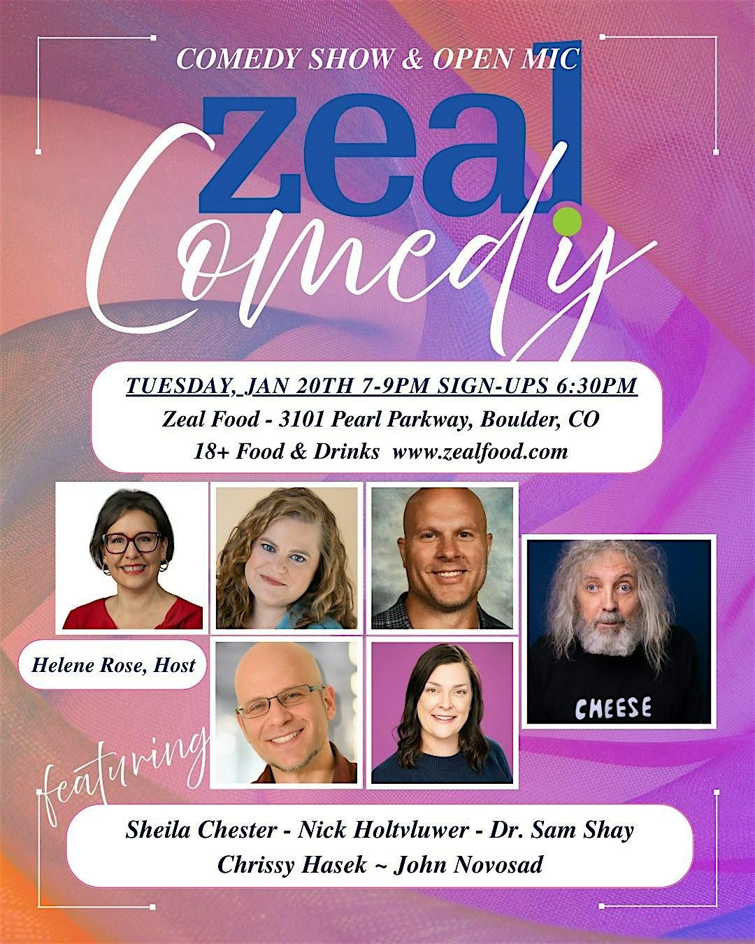 Join us for our monthly Comedy Show & Open Mic at Zeal Food!