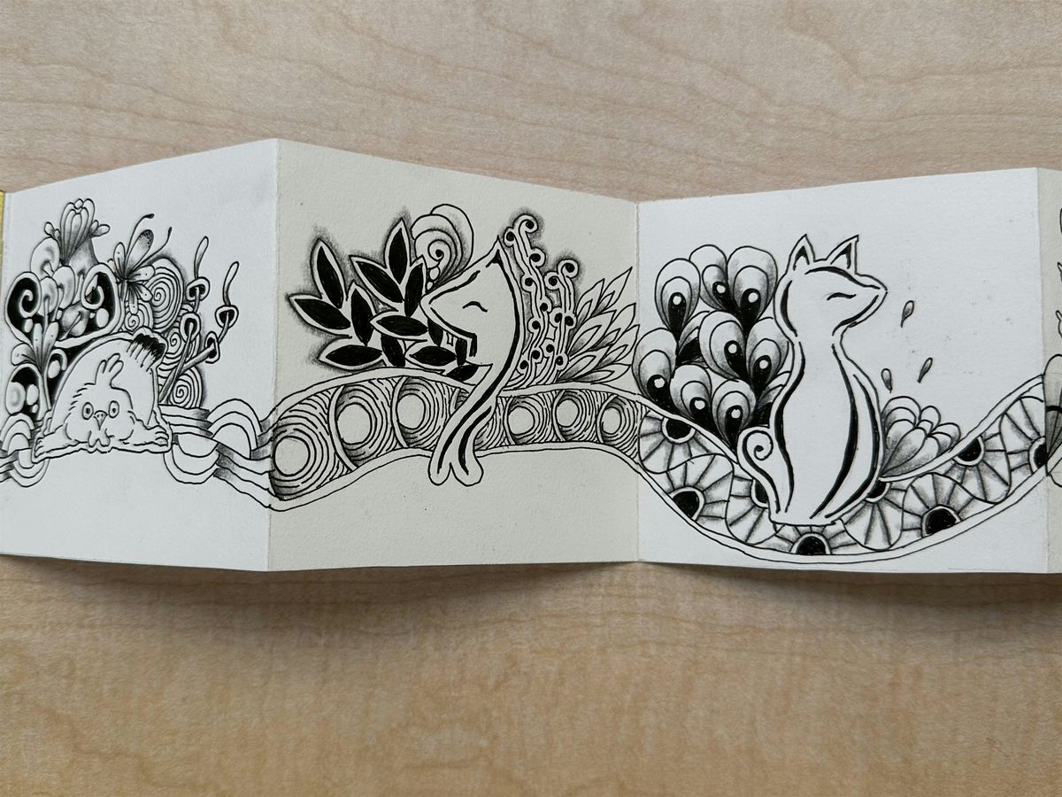 In this course, participants will make a booklet filled with tangle patterns. The Zentangle method is an easy-to-learn, relaxing way of creating beautiful drawings using repeated patterns. These repetitive patterns are called "tangles". Zentangle art is abstract, and non-representational. Participants will also learn easy ways of drawing animals to add into their art pieces. These elements will come together in hand-made Zentangle-Inspired Art booklets.