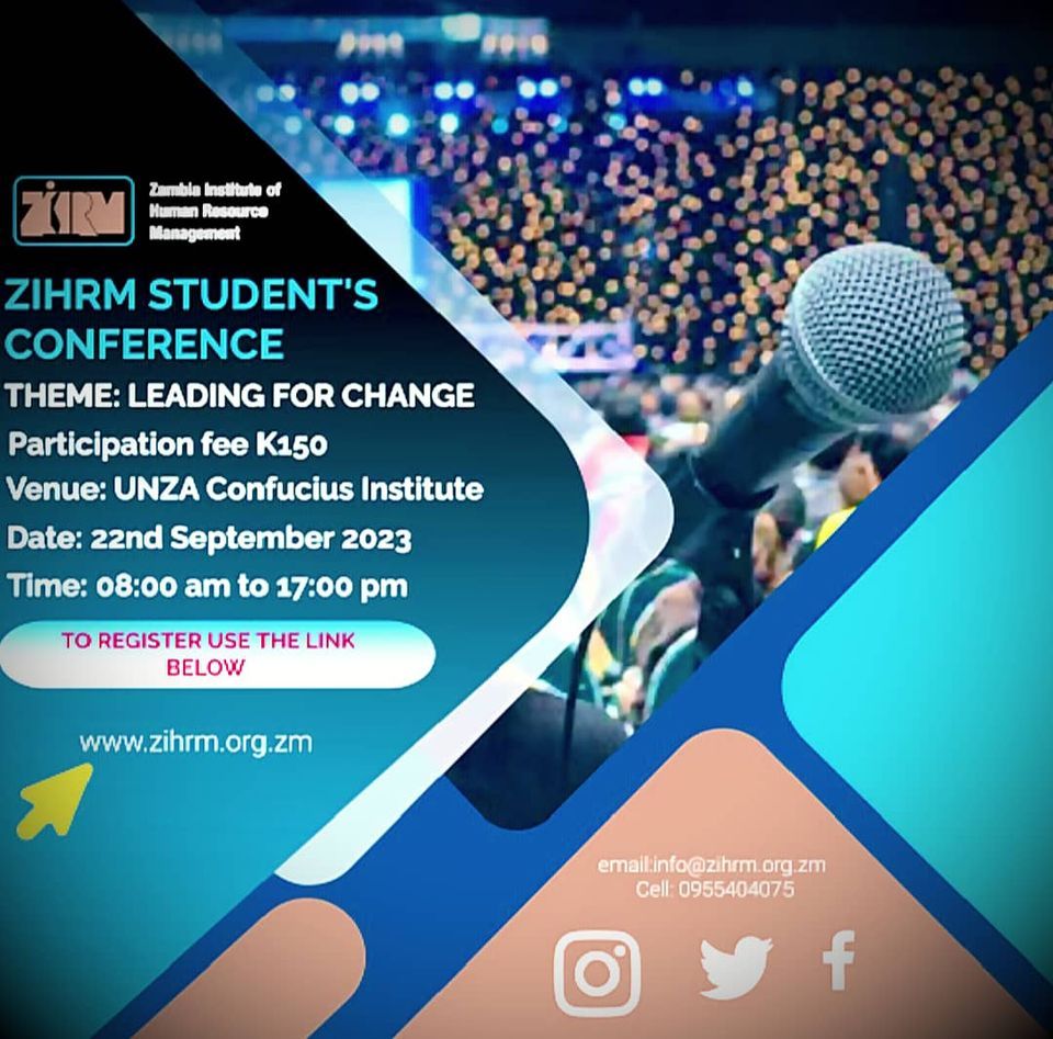 Save Your Spot at the ZIHRM Student Conference 2023.We are excited to extend an invitation to you! This year the theme is "Leading for Change". We have scheduled phenomenal speakers and other exciting activities. This will be a continuous learning experience which is critical to your career growth. Come and join your peers at the Student Conference on 22nd September, 2023. Click this Link below to Register