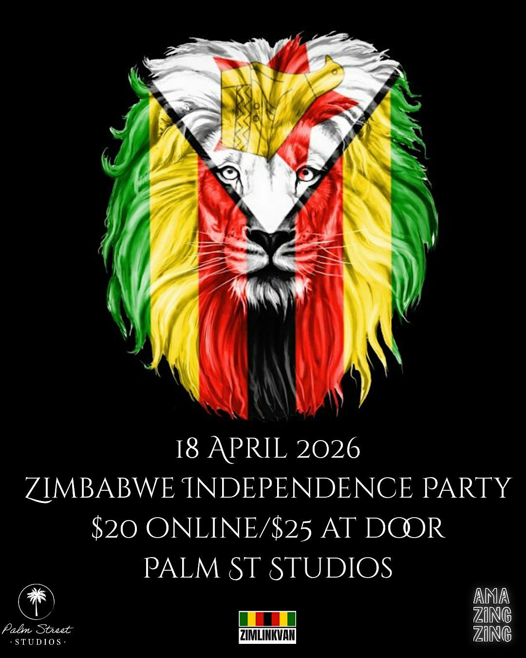 Welcome to Zimbabwe's 46th Independence Day Party happening at Palm Street Studios on April 18, 2026 at 10:00 PM Pacific Time (PST)