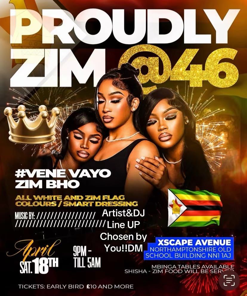 We are pleased to announce the Zim Independence Celebration after party UK at the prestigious Xscape Venue in Northampton.As we celebrate life and the Zimbabweans in the diaspora we have planned a night out to remember and to Escape the pressures of our day to day lives.