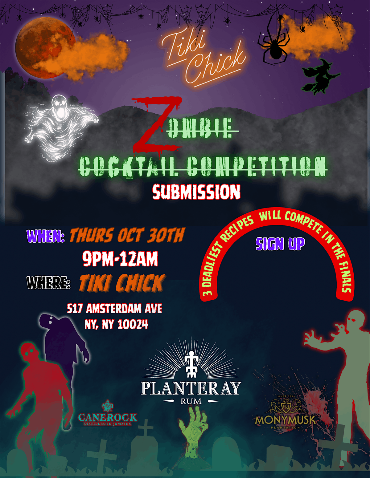Competition rules will be emailed after signup. Zombie cocktail recipe submissions will be due by Mon Oct 13th at 11:59pm