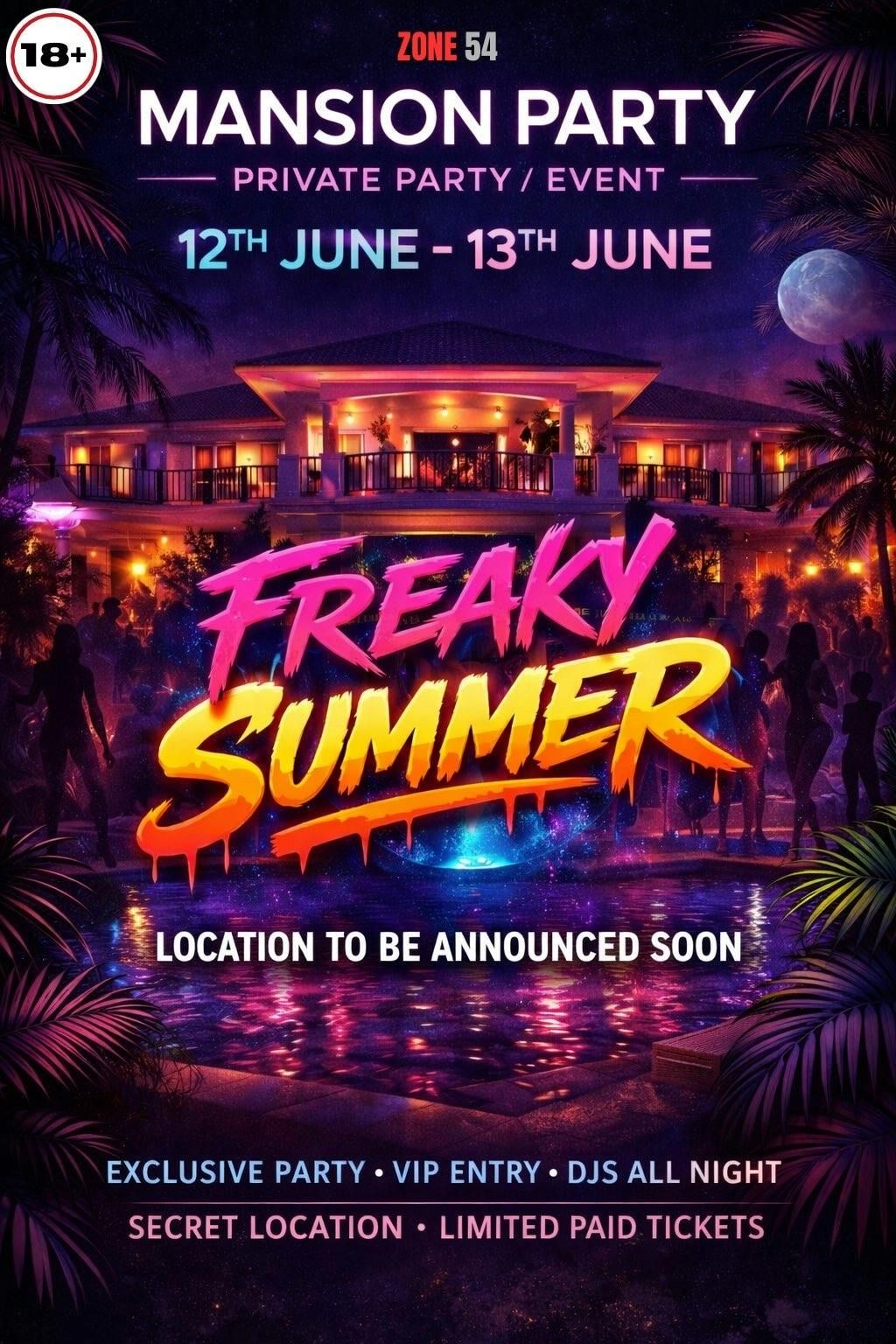 Welcome to the mansion party of this summer celebrating the one of the CEO’s of zone54 birthday 🎉🎉🎊this summer we doing it right with a twist where the freaks🤫 are outside, baddies having fun and mandem stepping right🕺welcome to the opening of the Freaky Summer ☀️tour soon out on limited tickets 🎟️ location will be released but the area is located at Rochdale-greater Manchester: Food is also provided 6:00pm but after 8:00pm all food will be put away