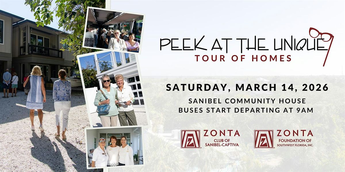The Zonta Club of Sanibel-Captiva and the Zonta Foundation of Southwest Florida are delighted to announce our 2026 PEEK at the Unique . Take a "Peek" this year at two waterfront gems in a hidden corner of Sanibel, a beautiful new residence in the making that illustrates the island's rebirth, and finally, a joyful home and garden overflowing with the pure, happy spirit of life on our island. Your participation supports women and girls through the Zonta Foundation of Southwest Florida!