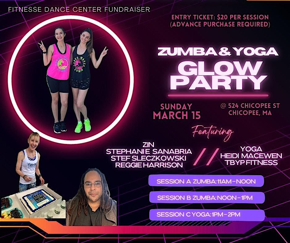 Join us for 1 (or more than 1) of our fitness sessions! We bring the glow sticks AND THE FUN! Each Zumba session features a few routines from each of our wonderful, guest Zumba instructors. The yoga session is taught by the fabulous, Heidi, from Total Body Yoga and Pilates in Granby.