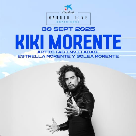 ⭐ Kiki Morente llega a la capital para cerrar su gira del álbum Azabache. Las guitarras de Carlos de Jacoba y Joni Jiménez estarán junto a él en el escenario, además de dos artistas invitadas muy especiales: Estrella y Solea Morente. Qué vas a disfrutar 🎸 Un homenaje al cante y a las raíces del cantaor, guitarrista y compositor Kiki Morente 🎵 La V edición del exitoso festival de música CaixaBank Madrid Live Experience 🌟 El espectacular escenario del Gran Teatro CaixaBank Príncipe Pío 🎤 Un ciclo que reúne a Coque Malla, Las Migas, Pedro Guerra & Javier Ruibal, Marlon y más artistas Información 📅 Fecha y hora: 30 de septiembre a las 21:00. Apertura de puertas a las 20:00 📍 Lugar: Gran Teatro CaixaBank Príncipe Pío, Madrid 👤 Edad: todas las edades. Los menores de 16 años deberán ir acompañados por su madre, padre o tutor ♿ Accesibilidad: recinto accesible para personas con movilidad reducida ❓ Puedes consultar las preguntas frecuentes y sus respuestas aquí 👉 El concierto se disfrutará sentado Cartel de Artistas Confirmados para CaixaBank Madrid Live Experience 2025 24 de septiembre - Crystal Fighters 25 de septiembre - Pedro Guerra y Javier Ruibal 26 de septiembre - Las Migas 27 de septiembre - Pica Pica 28 de septiembre - Fetén Fetén 28 de septiembre - Marlon 29 de septiembre - Coque Malla 30 de septiembre - Kiki Morente Descripción ¡El final de verano se llena de buena música! CaixaBank Madrid Live Experience vuelve en 2025 para ofrecerte un festival único en Madrid. Una semana en la que podrás disfrutar con algunos de los grandes grupos y solistas del panorama nacional e internacional en directo. En esta ocasión disfrutarás del reconocido cantaor Kiki Morente rindiendo homenaje al cante y a las raíces. Vive una experiencia única en la que celebrar la música, cantar a pleno pulmón y disfrutar de su directo en este espectacular escenario en el centro de Madrid. ¿Te lo vas a perder? ¡Consigue tus entradas para la V edición de CaixaBank Madrid Live Experience!