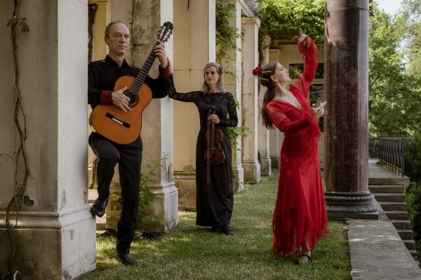 Tanz, Violine und Gitarre! In dieser Show verschmelzen die Klänge der spanischen klassischen und Flamenco-Gitarre und Lebendigkeit der Violine mit dem temperamentvolle Tanz des Flamencos und Eleganz des klassisch spanischen Tanzes (danza estilizada). Musikalische und choreografische Kompositionen formen sich zu Bildern und Farben, erschaffen Ausdrucksmöglichkeiten, erzählen Geschichten, wie sie unterschiedlicher nicht sein könnten und lassen Spielraum für Interpretationen.Weder die Musik noch der Tanz bedeckt sich, drängt sich nicht auf, sondern respektieren sich in all ihren Absichten, Ausdehnungen und Nuancen. Klassische Stücke wie z.B. Piazzolla, Albeniz und freie Kompositionen des Flamencos.
