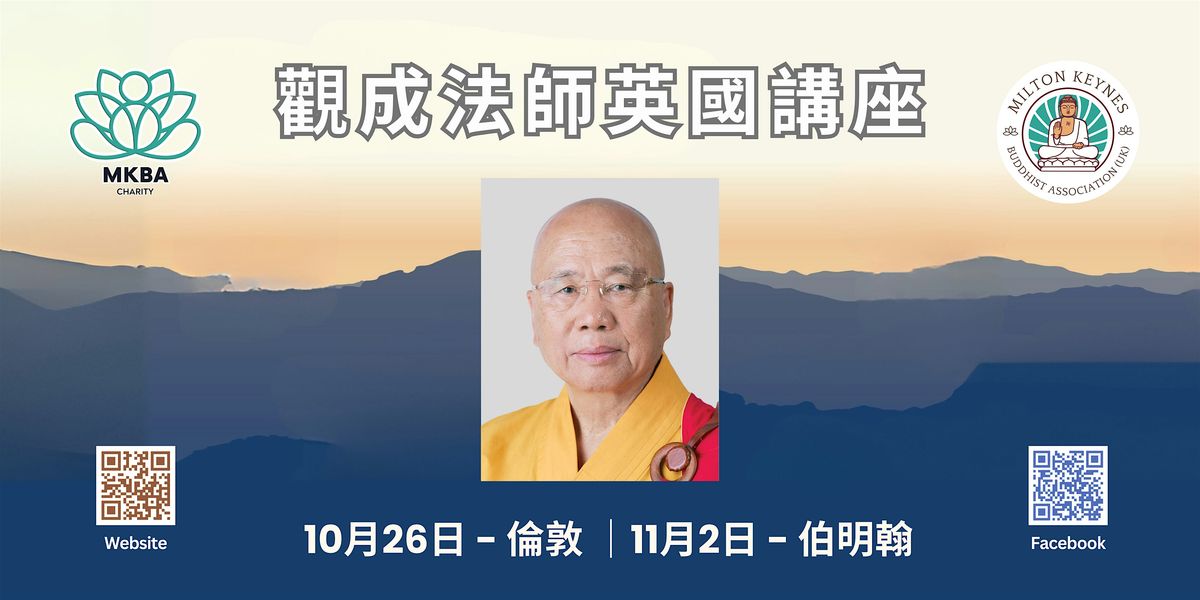 Organised by the Milton Keynes Buddhist Association (MKBA), Venerable Guan Cheng will visit the UK in November 2025 to deliver two Cantonese Dharma talks in London and Birmingham. The Birmingham session will focus on the profound practice of Buddha-name recitation, guided by the compassionate wisdom of Mahasthamaprapta Bodhisattva’s “Easy Path. The talk will offer practical guidance for cultivating peace of mind, enhancing interpersonal harmony, and planting wholesome causes for rebirth in the Pure Land of Ultimate Bliss. All are warmly welcome to attend and benefit from the Dharma together.
