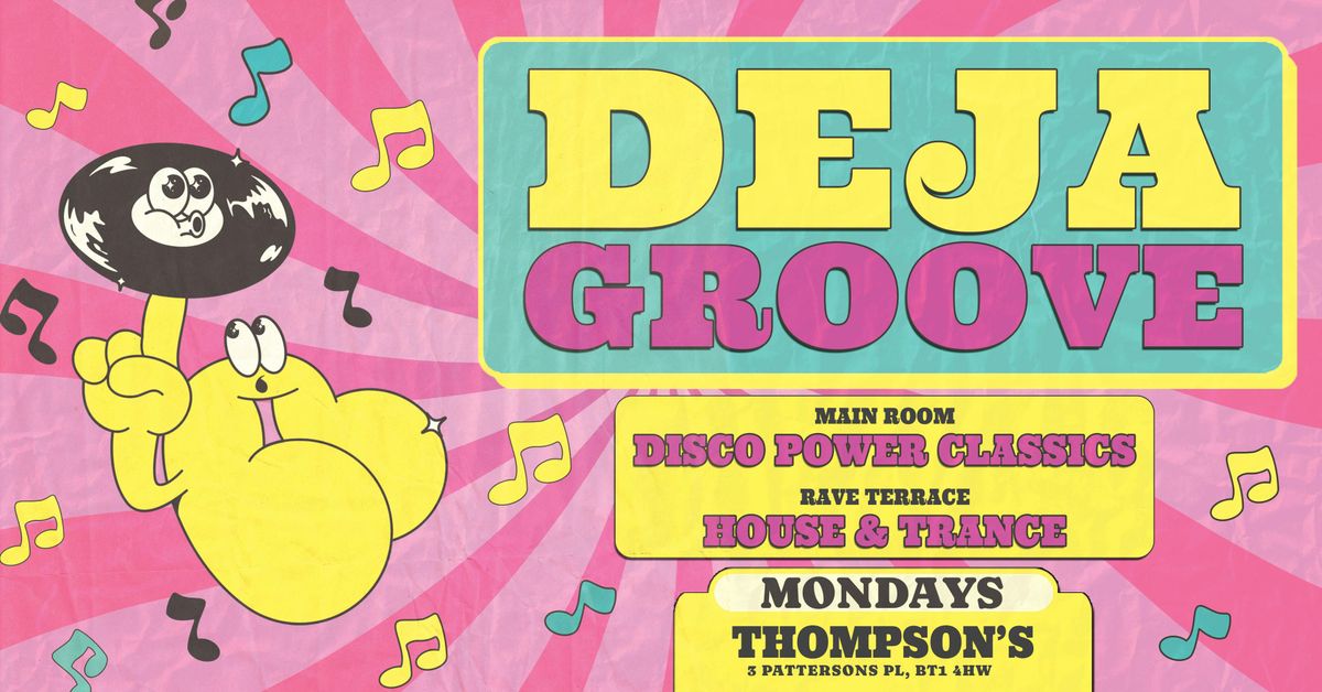 💿🎶 DEJA GROOVE - Every Monday 🎶💿What's Deja Groove? A timeless, endless music-led space paired with grooves filled on the dance floor.// MAIN ROOM //A night of immaculate music, high-energy hits, and a journey through the music ages. Expect disco power classics all night long – from glitter-ball anthems to soulful floor-fillers.// RAVE TERRACE //We take it back to the glory days of the 90's rave scene, where Belfast found itself infatuated with the rave culture. Here we pay homage to the roots; it’s house and trance taking you higher, with deep cuts, euphoric drops and hands-in-the-air energy.// THE LOFT //In here, anything goes—a small, immersive & intimate space where you get right in the DJ's face and feed off each other's energy! Expect nothing but a music-focused crowd, no strict music genre, just vibes and anything that slaps...Different spaces, different sounds, one community. Pick your poison and lose yourself in the groove.