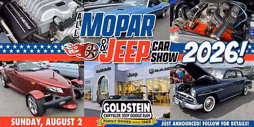 ALL MOPAR & JEEP CAR SHOW 2026 at Goldstein CDJR in Latham!
