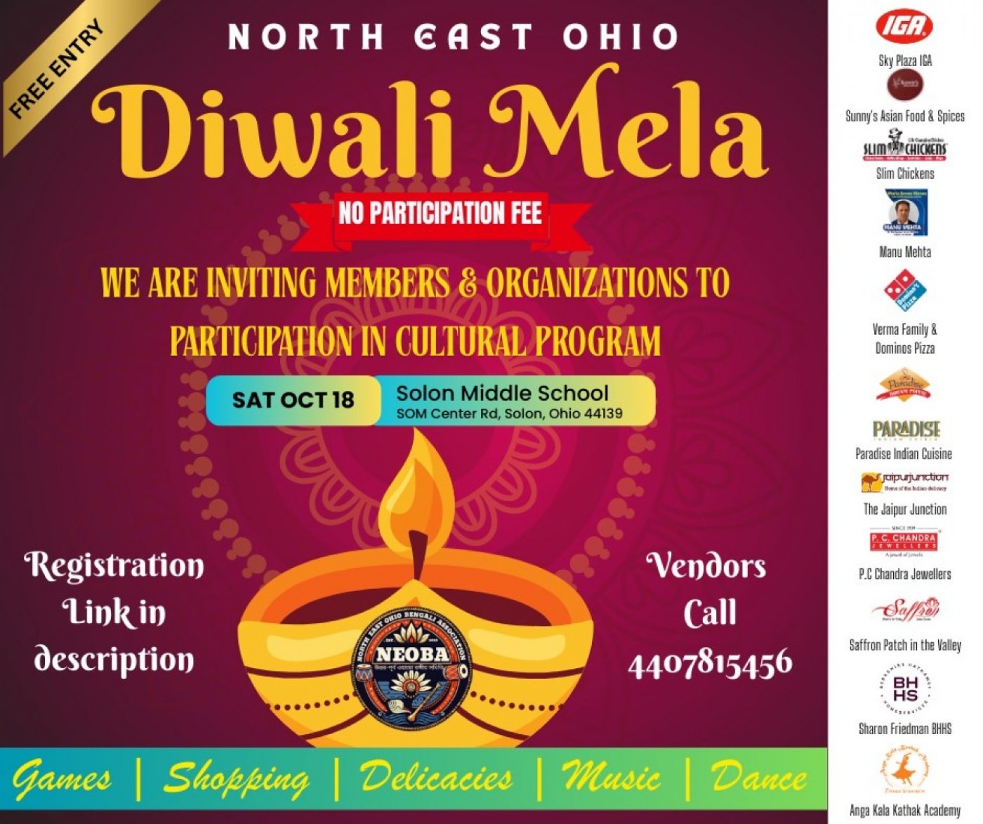 When is Diwali Mela- North East Ohio Bengali Association AKA NEOBA
